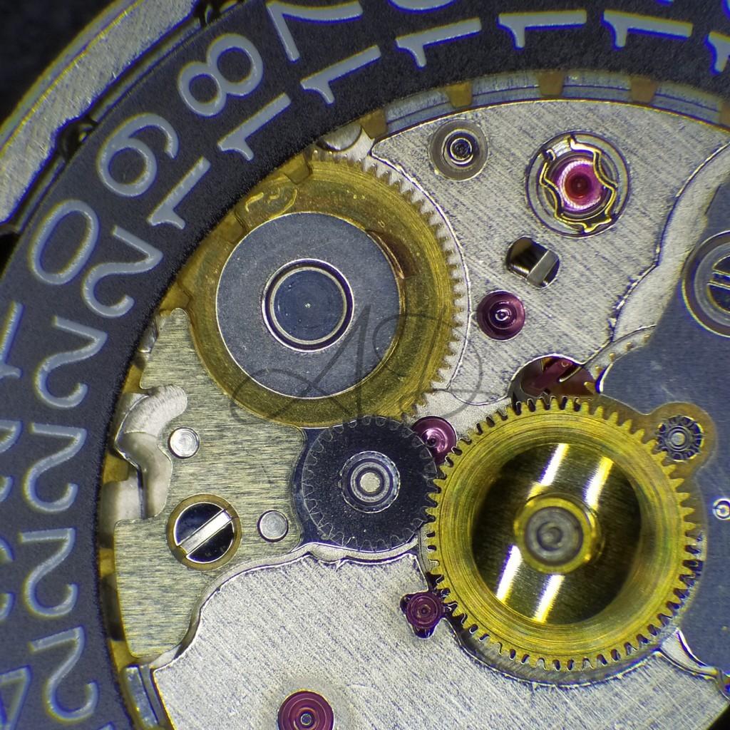 Nel dettaglio si apprezzano i vari ruotismi che permettono lo scatto istantaneo della data.