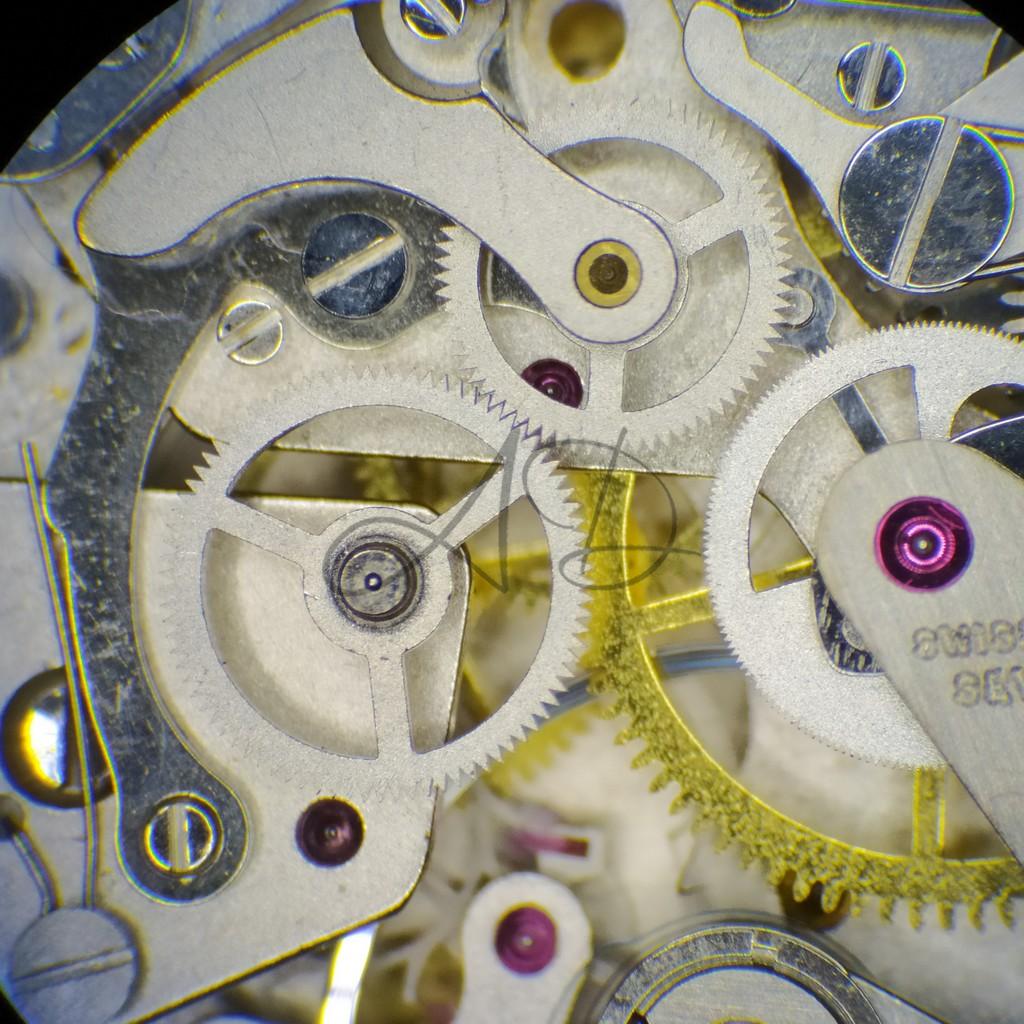 Rimossi tutti i componenti finora citati si estrae il meccanismo dalla carrure e si procede procede con una prima generica ispezione dello stesso da entrambi i lati.
